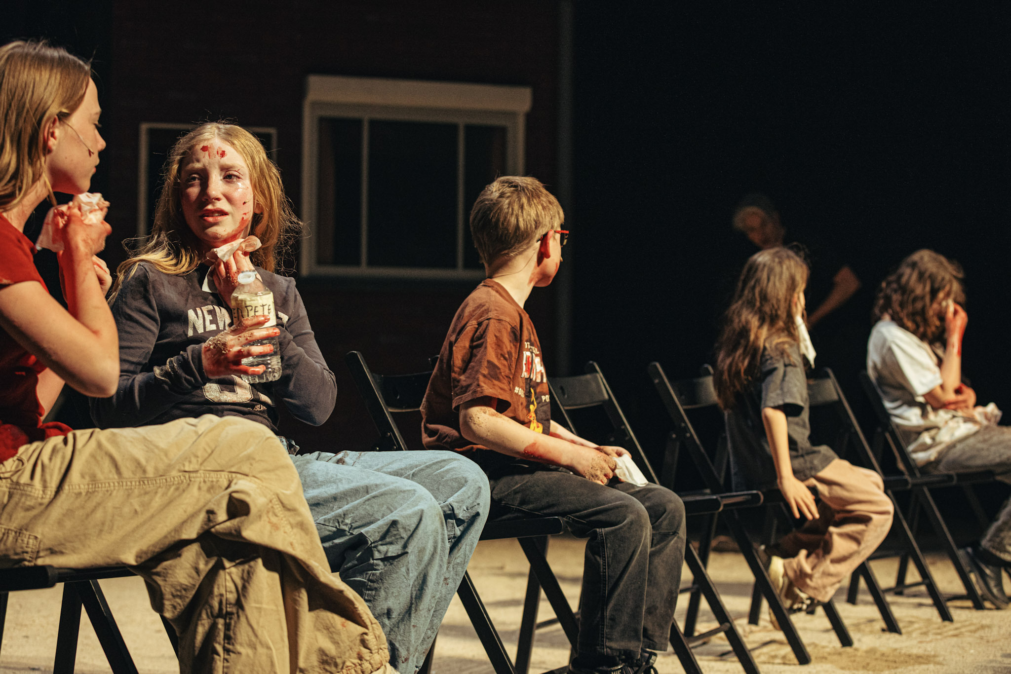 Come Orestes in Mosul o Antigone in Amazzonia (qui; qui) anche il titolo Medea’s Children esprime la prospettiva privilegiata da Rau: in questa tragedia i figli di Medea acquistano il primo piano. La presenza di bambini e ragazzi sul palco per tutto lo spettacolo determina il sorgere di interrogativi che si aggiungono a quelli inevitabilmente sollevati dal nome Medea, a cominciare da: ‘come può una madre assassinare i propri figli?’ Nel gioco teatrale che porta i giovanissimi attori non professionisti a entrare e uscire dalle parti assegnate irrompono così questioni sul ruolo e sulla definizione di ‘madre’, sull’opacità dei legami familiari, sull’amore, sulla solitudine, sulla morte, su come si possa convivere con la certezza di morire, sul destino: temi, questi ultimi, ricorrenti nei lavori di Rau, tra i quali voglio ricordare Everywoman (qui; qui) con una magnifica Ursina Lardi (Leone d’argento, Biennale Teatro 2025).