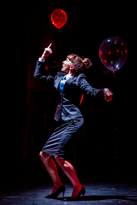 Disposti a diversa altezza e secondo una chiara visione geometrica, i palloncini, alcuni bianchi, altri trasparenti, veicolano anche un’idea di nitore e ordine rigoroso che, in uno spettacolo legato alla poésie, è segno di labor limae. Ma in certe scene, quella stessa disposizione spaziale si presta a essere letta diversamente: come metafora di schiere ordinate e disciplinate, di schiere di uomini in armi alle quali rispondere con la résistance.