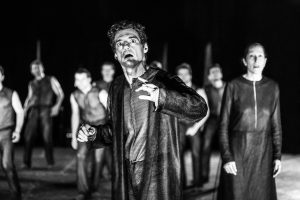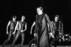 Si tratta di un’Antigone buia, corale, luttuosa, in cui i personaggi sono impegnati in una danza macabra per la sopravvivenza: il coro per la sopravvivenza della città, Creonte per la sopravvivenza del potere, Antigone per la sopravvivenza della pietà e della compassione.