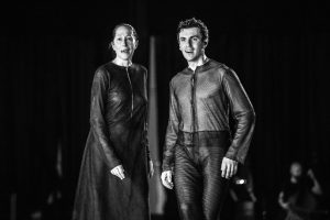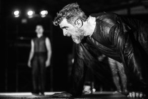La tensione raggiunge l’apice nel confronto tra Creonte e Antigone, che partono da un abbraccio iniziale e poi si separano, tendendosi l’una verso e contro l’altra senza mai più toccarsi e senza mai più stringersi; due figure unite da un’invisibile corrente che le trascina insieme e che insieme costituiscono un microcosmo fisico ed emotivo; due figure tenute insieme da un flusso emotivo di sentimenti negativi, rabbia, odio, disprezzo. Il loro è uno scontro inconciliabile, un conflitto tanto più potente proprio perché non giunge al sangue, alla ferita, alla collisione.